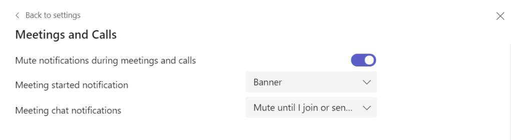 3. On the Notifications Settings, toggle Mute Notifications during meetings and calls.